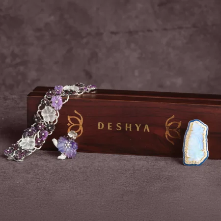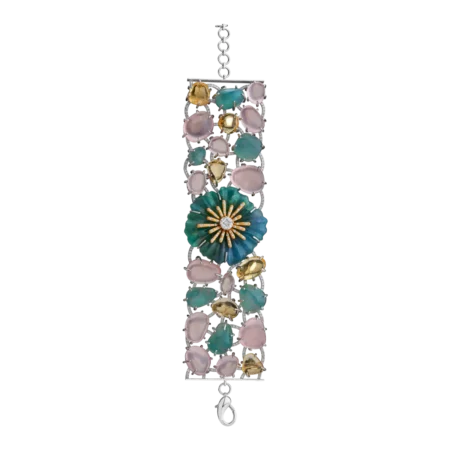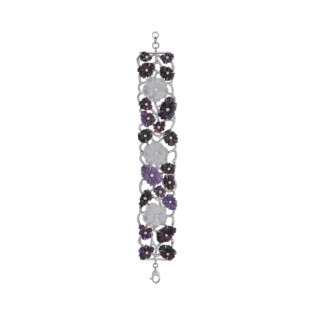 FLORAL BRACELET SET WITH SUGILITE, ROCK CRYSTAL AND DIAMONDS