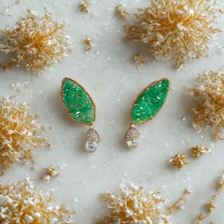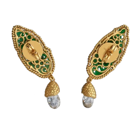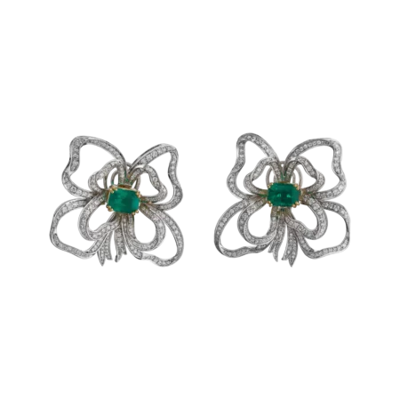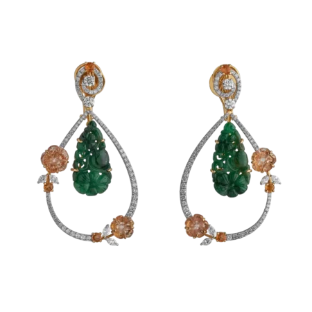EARRINGS SET WITH CARVED EMERALDS AND DIAMONDS IN 18K AND 22K GOLD