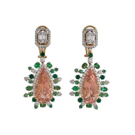 EARRINGS SET WITH MORGANITES, EMERALDS, TSAVORITE GARNETS, PARAIBA TOURMALINES, AND DIAMONDS
