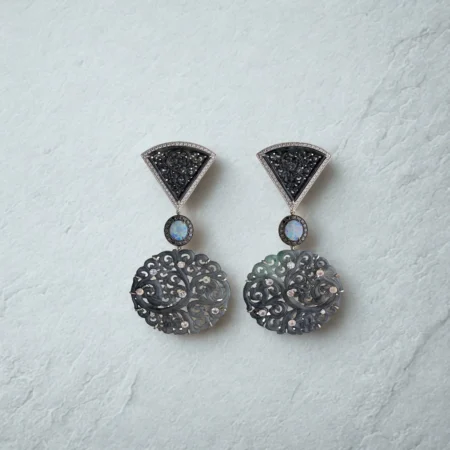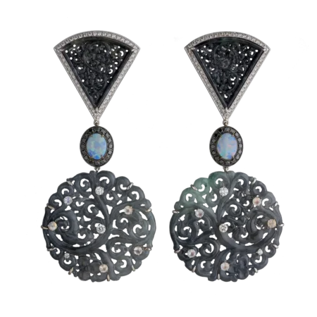 EARRINGS SET WITH BLACK JADEITE, AUSTRALIAN OPALS, MOONSTONES AND DIAMONDS