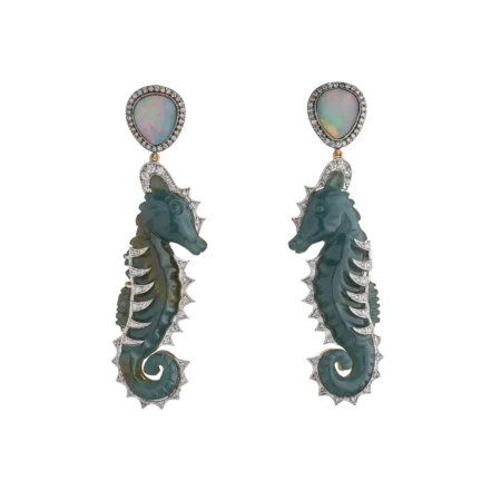 SEAHORSE EARRINGS SET WITH GUATEMALAN BLUE JADE, AUSTRALIAN OPALS AND DIAMONDS