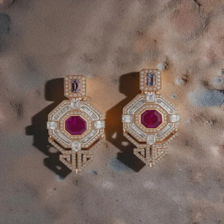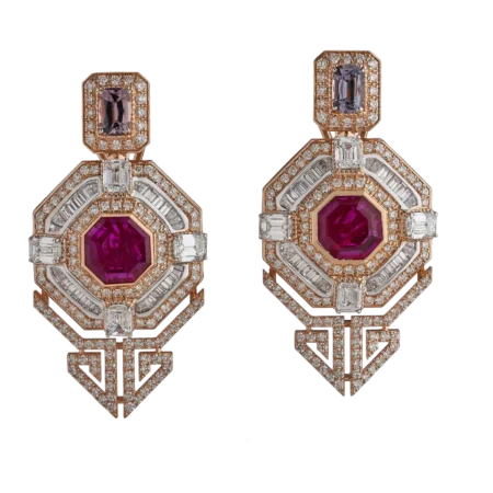 EARRINGS SET WITH RUBY, SPINEL AND DIAMONDS