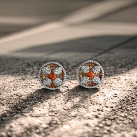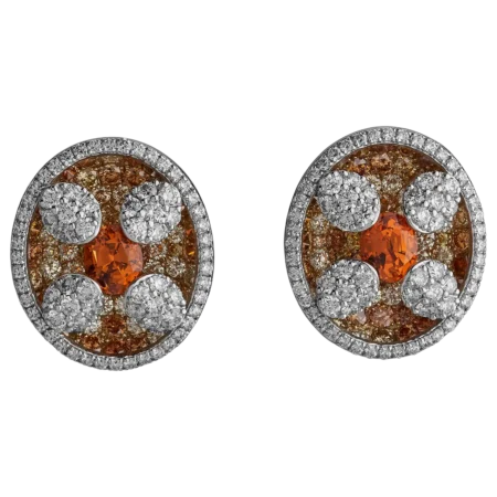 EARRINGS SET WITH MANDARIN GARNETS, AND WHITE AND COLOURED DIAMONDS