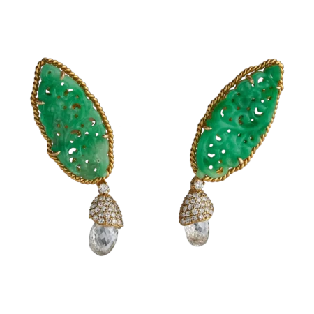 EARRINGS SET WITH GREEN JADEITE, BRIOLETTES AND DIAMONDS