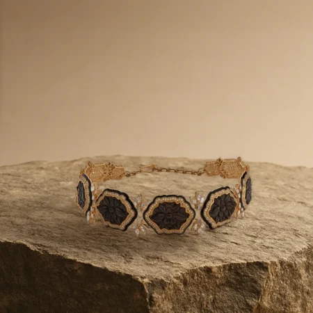CHOKER SET WITH GOLDEN SAPPHIRE, BLACK ENAMEL AND DIAMONDS