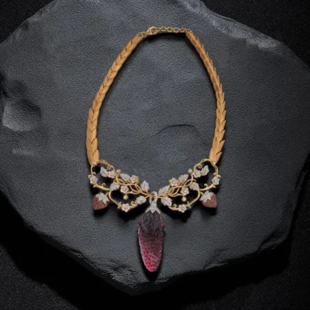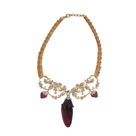 STRAWBERRY NECKLACE SET WITH RED GARNET, RUBIES, AND WHITE AND YELLOW DIAMONDS