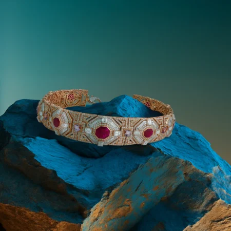 CHOKER-BRACELET SET WITH RUBY, SPINEL AND DIAMONDS IN 18K GOLD