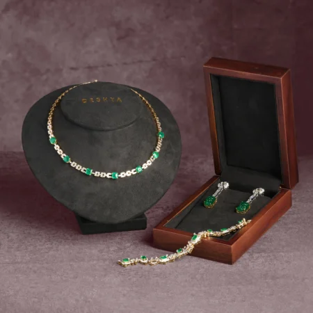 NECKLACE SET WITH EMERALDS AND DIAMONDS IN 18K AND 22K GOLD