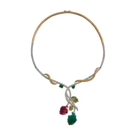 GRAPE NECKLACE SET WITH RUBELLITE,EMERALDS,TSAVORITES,YELLOW SAPPHIRES AND DIAMONDS IN 18K GOLD