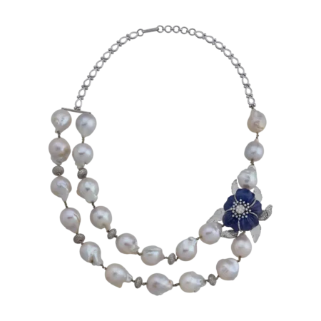 NECKLACE SET WITH TANZANITE,MOONSTONES,PEARLS AND DIAMONDS IN 18K GOLD