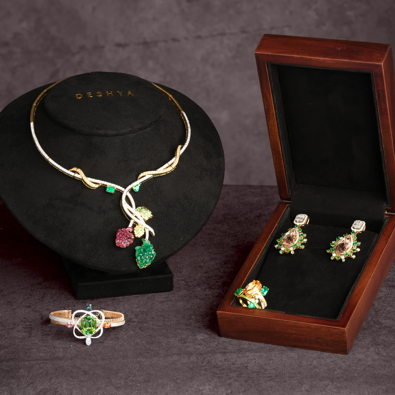GALAXY BRACELET SET WITH MINT TOURMALINE, SAPPHIRES AND DIAMONDS